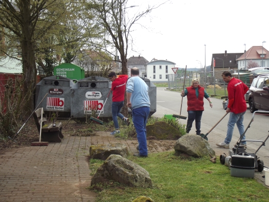 Zuerst wurde abgestellter Müll eingesammelt und in Säcke zum Abtransport verpackt. Dann konnten Glas, Unrat und andere, wenig appetitliche Hinterlassenschaften vom Gras gesammelt werden. Auch einige Fundsachen waren darunter, wie Bundeswehrmütze, Handynetzteil und Kopfhörer. Das Moos auf den gepflasterten Flächen wurde reduziert, das Gras gemäht. Nach getaner Arbeit gab es einen Imbiss für die Helfer und ein kühles Bier. Es ist schade, dass manche Leute so wenig auf die Örtlichkeit achten und mehr oder weniger als Müllabladeplatz missbrauchen. Man darf gespannt sein wie lange es dauert, bis dieser unschöne Zustand wieder vorherrscht.