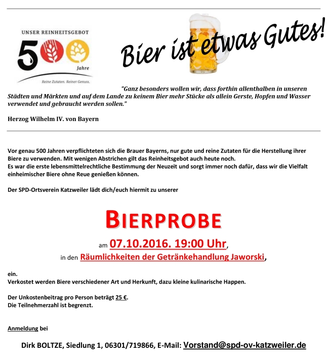 Bierprobe am 07.10.2016, 19:00 Uhr
