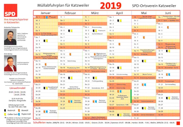 SPD-Ortsverein Katzweiler den neuen Abfallkalender für das Jahr 2019 an