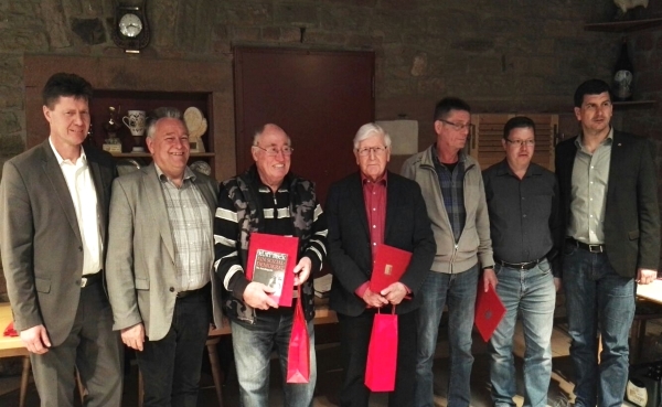 Auf dem Bild von links nach rechts: Harald Westrich, Martin Müller, Horst-Dieter Lorentz, Josef Traub, Karl-Heinz Theisinger, Dirk Boltze, MdL Daniel Schäffner