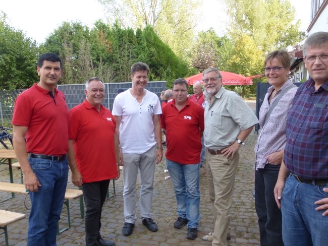 Bei einem kühlen Getränk und einem kleinen Imbiss konnte man völlig unverkrampft das Gespräch mit Kommunal-, Landes- und Bundespolitikern der SPD suchen, die der Einladung des Vorsitzenden Dirk Boltze gerne gefolgt waren. Bundestagsabgeordneter Gustav Herzog, Landtagsabgeordneter Daniel Schäffner, Verbandsbürgermeister Harald Westrich, Stadtbürgermeister und Landratskandidat Martin Müller und die SPD-Gemeindeverbandsvorsitzende Martina Stein konnten zu allen aktuellen und schon länger anliegendenThemen befragt werden.