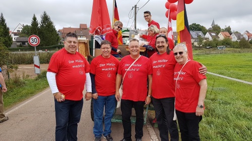 Einen trockenen Kerweumzug 2017 konnten alle Beteiligten, unter ihnen SPD-Landratskandidat Martin Müller, und die vielen Zuschauer genießen.