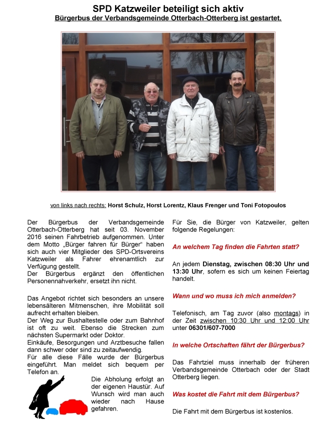 SPD-Ortsverein Katzweiler stellt vier Fahrer für den Bürgerbus der Verbandsgemeinde