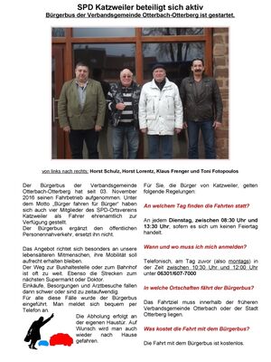 - Infos zum Bürgerbus der Verbandsgemeinde mit einfacher Darstellung aller wichtiger Fakten für die Bürger von Katzweiler